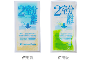 このように、二室分離袋は使用する直前に混ぜる必要があるものや、一手間感を大切にしたい化粧品用途などで活躍するアイテムです。あらかじめ混合している商品に比べて、品質保持期間の延長も可能です。また、混ぜるための容器がいらないという点でも評価をいただいています。