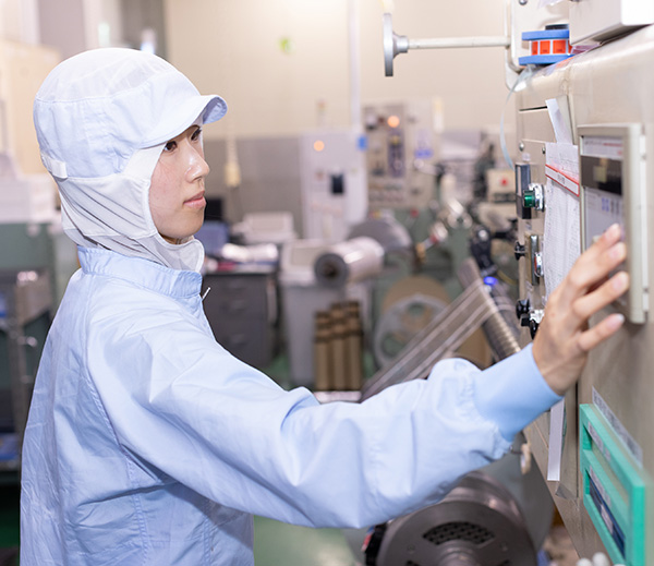 現在はスリッターという生産工程の中では最終の部署で作業をしています。