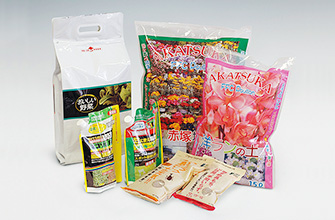 Available packaging includes "Wave Seal" pouches for gardening, which maintain product quality and protect against insects, high-capacity "zippered large gusset pouches," and much more to meet various applications.