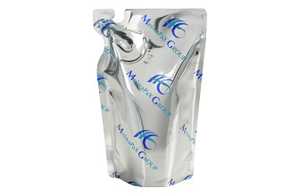 A three-dimensional film gusset structure enables them to stand remarkably well on their own. They are manufactured in a dedicated clean room. Filling is easy, as very little foam is produced during the filling process. The upper part of the gusset functions as a handle, for easy-carrying and hot-filling capabilities. Its external cardboard can be printed on as well. This pouch is known for having very little residual liquid compared to conventional pillow types, and can be used to hold high-viscosity products. Several types of spouts are available for selection, to meet specific content or application requirements.